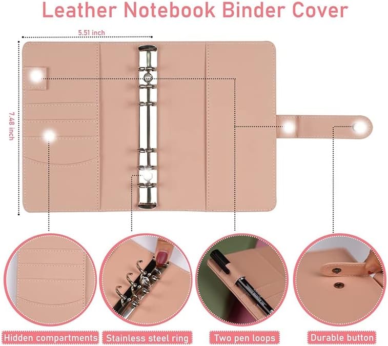 1 x 6-ring leather-based money binder cowl,