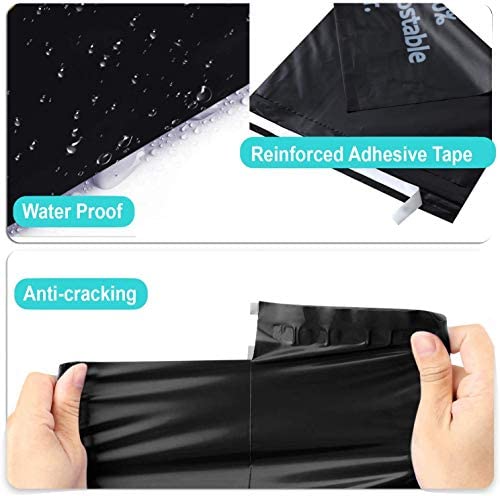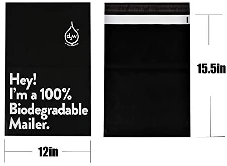 12×15.5 Inches 100% Biodegradable D2W Poly Mailers, 50pcs Black Compostable Envelopes Shipping Bags, Eco Friendly Waterproof Stretchable Self Sealing Mailing Bags