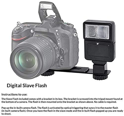– The Slave Flash Included in the bundle is intended to connect with the bracket provided and works in the slave mode with the inbuilt flash on.