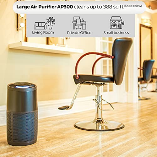 CLEANER AIR IN MINUTES: Independently verified by AHAM (Association of Home Appliance Manufacturers) to filterthe air in an area of 388 sqft 5x per hour (4 see below) or up to 1,850 sqft 1x per hour.