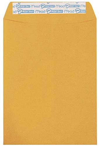 Secure important documents, letters and papers with Mead Press & Seal Envelopes. Without having to moisten the seal, or endure the foul envelope aftertaste, the self-adhesive seal instantly closes. Mead self-adhesive kraft envelopes are perfect for general correspondence that is too large to fit in a standard envelope or shouldn’t be folded. No more moisteners, gummed flaps, tape, or glue. Just pull back the protective tape from the flap of each envelope and close it down for a secure seal. Address them by hand or use computer labels.