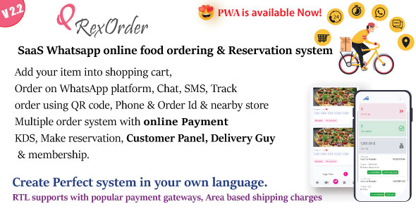 QRexOrder is a SaaS-based multi-restaurant food ordering & reservation system with payment gateways. It’s very secure, well documented, fast & user-friendly. It is mainly using to make a restaurant website and online food ordering, reservation and delivery system.