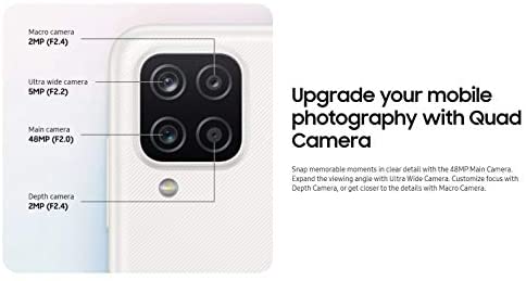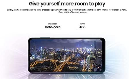 More display means more room to play: Expand your view to the 6.5-inch Infinity-V Display of Galaxy A12 Nacho and see what you’ve been missing. Thanks to HD+ technology, your everyday content looks sharp, crisp and clear. Upgrade your mobile photography with Quad Camera: Snap memorable moments in clear detail with the 48MP Main Camera. Expand the viewing angle with Ultra Wide Camera. Customize focus with Depth Camera, or get closer to the details with Macro Camera. Power that keeps you going: Stay ahead of the day with a battery that won’t slow you down. The 5,000mAh (typical) battery lets you keep doing what you do, for hours on end. And with up to 15W of Adaptive Fast Charging, Galaxy A12 Nacho quickly gets back to full power. Give yourself more room to play: Galaxy A12 Nacho combines Octa-core processing power with up to 4GB of RAM for fast and efficient performance for the task at hand. Enjoy 128GB of internal storage.
