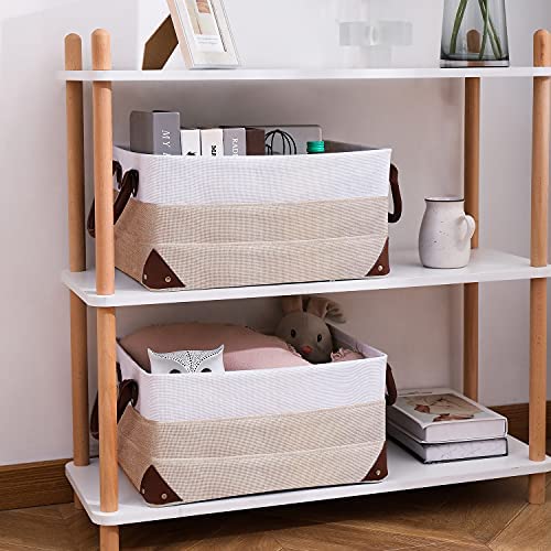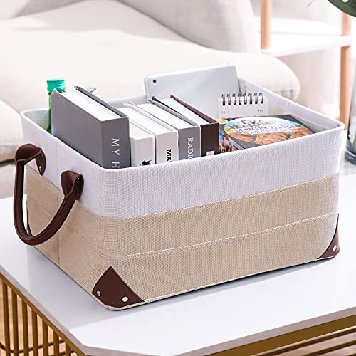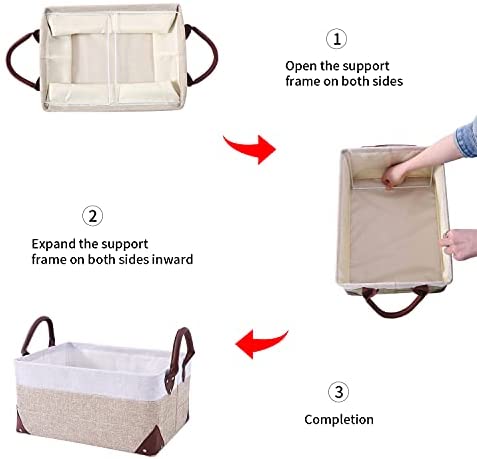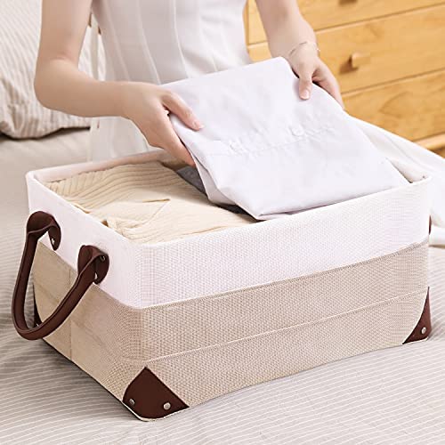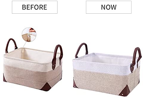 DURABLE MATERIAL – The storage bins baskets made of high-quality linen fabrics. Sturdy leather handles reinforced seams are implemented with a stainless rivet ,the load-bearing capacity is doubled for easy lifting, convenient to move.