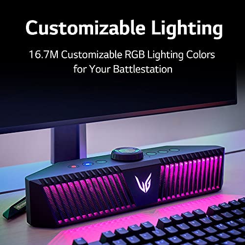 Zero in on the perfect gaming speaker. Immerse yourself in the game with the LG UltraGear Speaker. Zero in on quality audio with Hi-Fi DAC, 20 watts of power and customized 3D gaming modes to keep you in the zone. A built-in microphone lets you chat while you play—no headset needed. And with 6 hours of battery time, you can play longer.