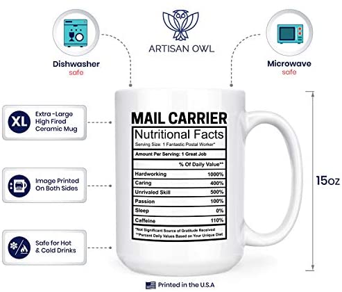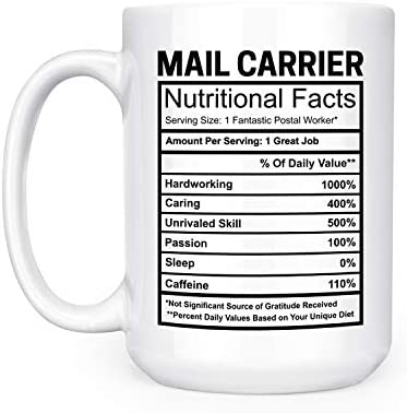 PERFECT FOR MANY OCCASIONS -MAIL CARRIER NUTRITIONAL FACTS/INGREDIENTS LABEL MUG is a great daily functional accent piece.