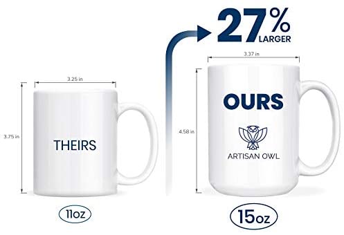 DESIGNED WITH YOU IN MIND – We know that your time is valuable. Unlike most mugs which hold 11 ounces, we have printed our design on a mug which holds a generous 15 ounces of liquid, allowing you to pour and enjoy more. This extra-large high-fired ceramic mug, with easy-grip handle, will keep your morning dose of caffeine piping hot as you start your day.