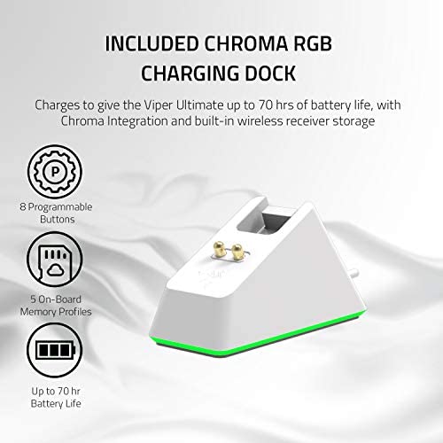 The Lightest, Zero-Compromise Wireless Esports Gaming Mouse at 74g: The Razer Viper Ultimate includes a 20K DPI optical sensor befitting the most serious gamers without the need for drilled holes