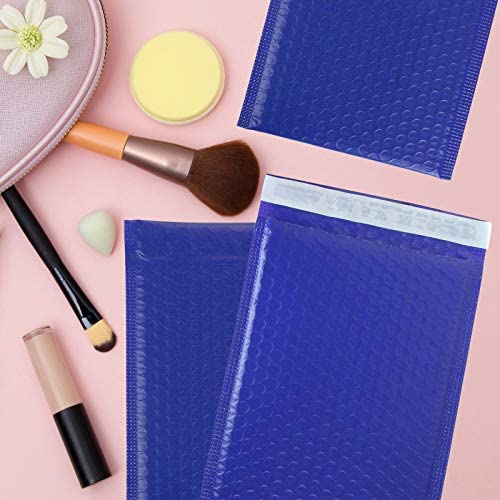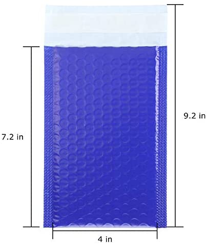 【4” x 8” Bubble Mailers】Blue poly bubble cushioned lined envelopes usable size is 4x7inch, you can use these to mail cosmetics, paintings, fashion accessories, jewelry, medicines, seeds and bulbs, books, etc