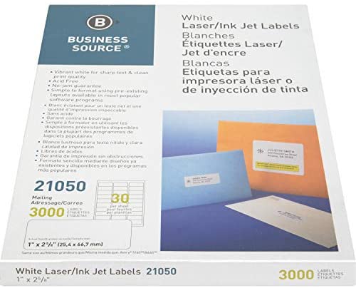 Use mailing labels to address envelopes and packages. Acid-free labels feature permanent adhesive and a vibrant white surface for sharp text and clean print quality. Jam-free labels are compatible with laser printers only.