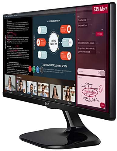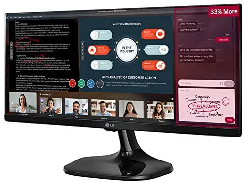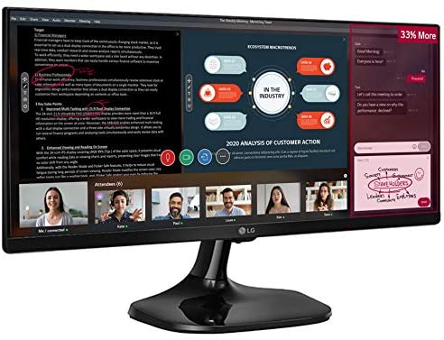 25 Inch 21:9 Ultra Wide IPS LED Monitor. Monitor features sRGB over 99 percent for color accuracy. Also includes Screen Split 2.0 for multi tasking and Game Mode for improved gaming. With Stand Weight:8.8 Pounds. Without stand -width- 24 inches, height- 2.19 inches, depth- 11.29 inches. Input : HDMI 2.0. Viewing Angle 178/178 (CR≥10) .