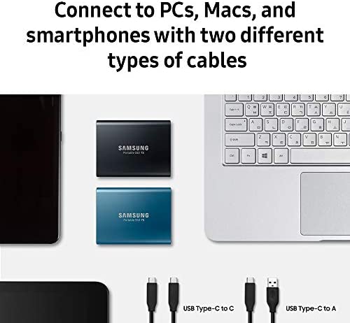 The Samsung T5 Portable SSD has the latest in Samsung V-NAND flash memory technology. Its portable design, blazing fast transfer speeds of up to 540 MB/s, shock resistance, and secure encryption make it the best portable SSD on the market.