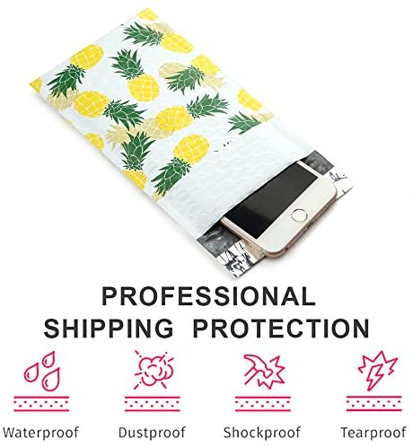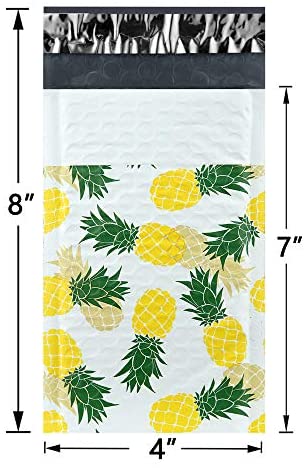 ?【Opaque Poly Bubble Mailers】 The pineapple designer bubble mailers outer size is 4×8 inch, while the inner size is 4×7 inch. With full air bubbles, our bubble mailers can protect your value products from damage caused by external impacts. The inner lining is using gray film, even if there is strong light, the items in the bag cannot be seen, which can protect your privacy well.