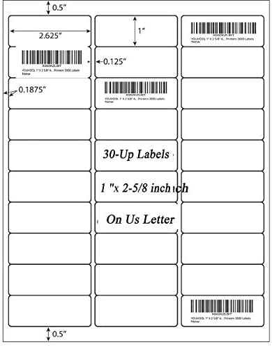 LABEL SIZE:Each Label Size 1″ x 2-5/8″, Sheet size: 8-1/2″ X 11″ (US Letter Size)