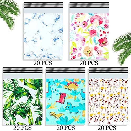 What you will get: there are 100 shipping envelopes with 5 different patterns, including dinosaur, floral flower, tropical leaves, marble blue and dandelion, 20 of each pattern; Sufficient quantity and abundant patterns can meet your different needs