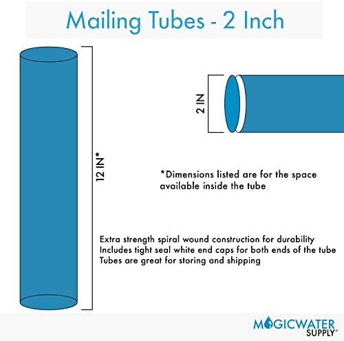 12 pack of MagicWater Supply 2 inch by 12 inch kraft mailing tubes with caps. Shipping tubes for art, drafts, rolled documents, or miscellaneous items.
