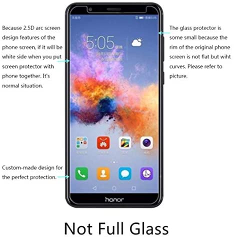 Specification: Explosion-proof, shatter-resistant glass breaks into small pieces , more secure than other glass products. Surface hardness: The surface has a hardness of 8-9h. So It’s about 9H hard than other glass products. Screen Protector Surface is anti-oil processing , so fingerprint and oil aren’t easy to stay surface. It’s easy to clean. Works with: Huawei Honor 7X/Mate Package include: 2x Glass Screen Protector 2x Wet/Dry Wipes 2x Dust Dust-absorber and Installation and Use Guidance. Attention:As the phone has a curve edge,the screen protector is not a full coverage one,or it may have a white frame.