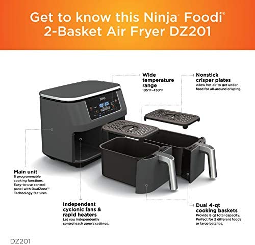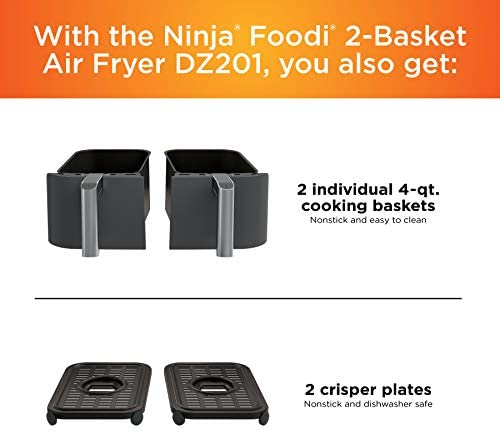 The Ninja Foodi 6-in-1 8-qt. 2-Basket Air Fryer with Dual Zone Technology. The first air fryer with 2 independent baskets that let you cook 2 foods at once, not back-to-back like a traditional single-basket air fryer. Dual Zone Technology’s Smart Finish feature intelligently manages to cook so both foods finish at the same time.