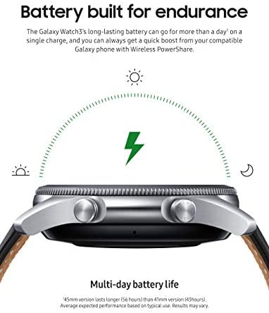 BATTERY BUILT FOR ENDURANCE: The Galaxy Watch3’s long-lasting battery can go for more than a day on a single charge, and you can always get a quick boost from your compatible Galaxy phone with Wireless Power Share