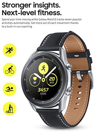 STRONGER INSIGHTS. NEXT-LEVEL FITNESS: Spend your time moving while Galaxy Watch3 tracks seven popular activities automatically. Get more out of each movement thanks to built-in run coaching