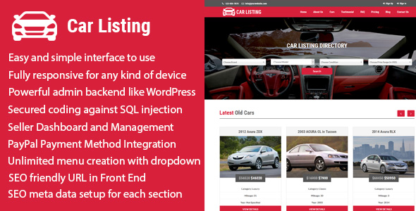 Carlisting is a responsive car listing directory Content Management System (CMS). Sellers can register and manage items easily through making a payment through PayPal. In this CMS, seller will give their car advertisements (to sale new and old cars) through paying to the website owner. Visitors will come and see the cars and contact the sellers through their email, phone or message forms for each individual cars.