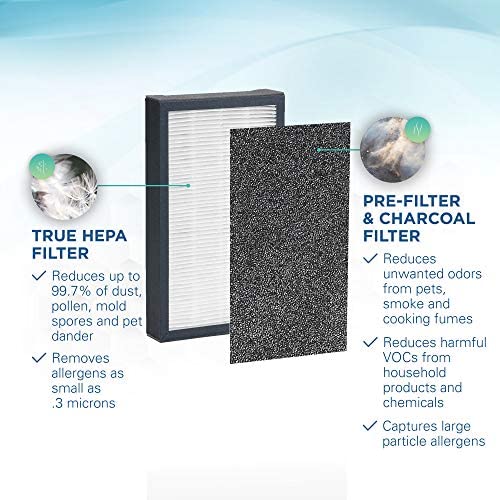 Reduces odors: Activated charcoal filter helps reduce unwanted odors from pets, smoke, cooking fumes, and harmful VOC’s emitted from a variety of household products and chemicals