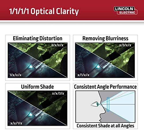 PREMIUM OPTICS – The 3350 Series features the exclusive 4C lens technology which creates a crystal clear, true color view of the arc and puddle. This enhances your control and increases weld quality while reducing eye strain. Additionally, the 3350 series lens has a 1/1/1/1 optical clarity rating which showcases the absence of common lens imperfections such as blurriness and distortion while also providing consistent brightness and performance at an angle.
