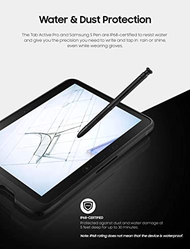 WATER-RESISTANT TOUCHSCREEN — Wet Touch mode allows the touchscreen to be fully functional regardless of water and rain, while Glove Mode is perfect for cold weather or clinical environments. The Tab Active Pro can withstand being submerged in water for u