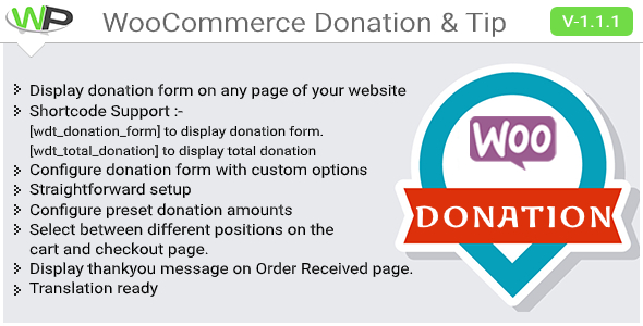 WooCommerce Donation and Tip plugin help you to configure your WooCommerce store to start accepting the donations/tips from your client. As an administrator, you can write a custom message for the donors, decide where to display the donation forms, and have a custom shortcode to add donation form on non-WooCommerce pages. There is no rule to donate any amount – customers can donate their desired amount.