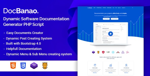 Description: DocBanao is a Responsive Software Documentation Generator PHP Script for any kinds of websites software Documentation generator. This bootstrap-based PHP Script is fully responsive and bootstrap 4 based design. It is 100% user-friendly and unique Software Document maker. This Php script is developed by PHP and Codeigniter framework.