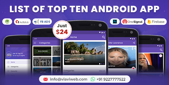 This app is about to display top 10 list in any field with categories and sub categories, we often search for top list of games, players, actors, cities, hotels, etc. You will get rank vise listing and with easy php admin you can update the list day by day.So it’s kind of app in which you can all the answer in it, It’s very easy to customize app with beautiful UI and new concept. Its gonna be unique and successful app for buyers.
