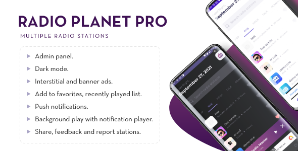 RadioPlanetPro is a versatile radio streaming app that runs under the Android and that is utilized for tuning in to numerous online radio streaming. Utilizing a ground-breaking and responsive Admin Panel which can oversee boundless radio broadcasts and classes which uphold numerous arrangements, this application was made by Android for the customer side and Laravel, PHP MySql for Server-side. Utilizing this application you can set aside your cash and time in making an application for your radio application from scratch and start your app publish immediately.