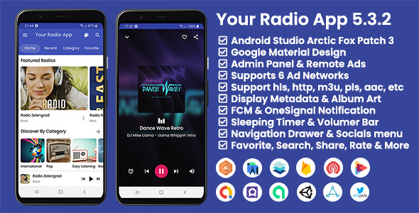 Your Radio App is a mobile internet radio streaming system which run under Android platform that used for listen many online radio streaming from your Android smartphone. using powerful and responsive Admin Panel which can manage unlimited radio station and categories which support many format, this application created by Android for client side and then PHP MySql for Server side. Run under Android platform which is the most popular operating system in the world. Using this application you can save your money and time in creating application for your own radio application.
