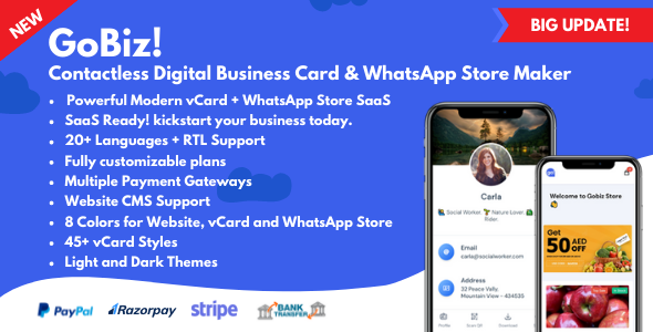 GoBiz is a digital business card / vcard making & WhatsApp store script. Made