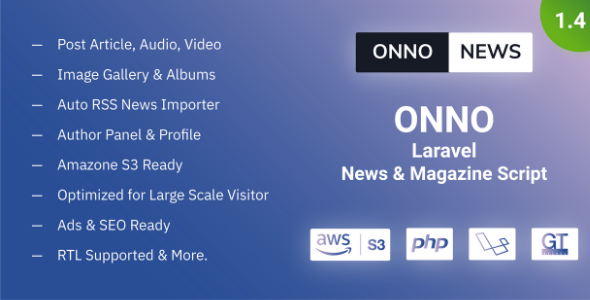 ONNO is complete News & Magazine CMS to easily start your online news & magazine platform. It has most powerful admin panel for manage article, videos, pulls, widget and many more. ONNO is build with one of the best web application framework — Laravel. Start online news and magazine site with ONNO to manage upto 100B article easily.
