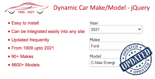 2021 Car Make/Model DB – 9600+ Models – jQuery