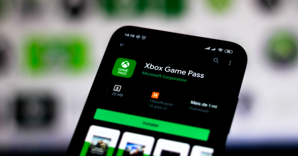 In this photo illustration the Xbox Game Pass logo app is displayed on a smartphone.