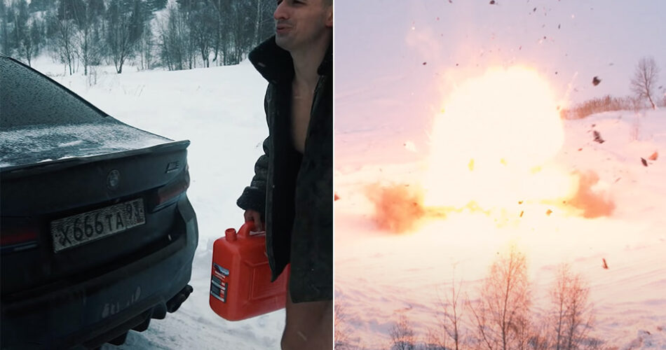 First, a Mercedes-AMG GT 63 S was burned down, and now, popular YouTuber LITVIN from Russia has decided to blow up a BMW M5 Competition as a tribute to his friend who lost their life while driving a BMW M4 Competition in Moscow. There really is no safe place to blow up a vehicle, or at least out in the wild, but LITVIN found a nice empty snowy field for the stunt and after dousing the vehicle in gasoline, flaming arrows ensued. Read more for the video and additional information.