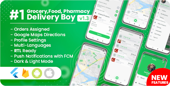 V1.3.0 | 02-04-2021 - Delivery Boy Mobile Application ( Flutter version 2.0.3 Stable Release ) Add Sentences to translation files. Add Turkish translation Update flutter version 2.0.3 (Stable Release) Upgrade Deprecated widgets Upgrade dependencies Fix some internal bugs Update documentation