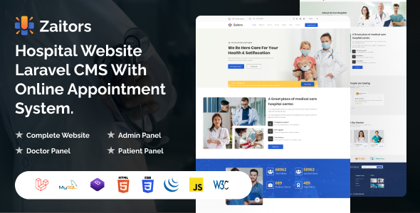 Zaitors is a hospital website laravel cms with online appointment system, e-prescription, doctor and patient panel. It is a nice website to communicate with doctor and patient with blog facility for Hospital. It provides very nice user experience to use this website. A nice and super easy customizable admin panel is attached. Its a nice place to show your hospital in the world.
