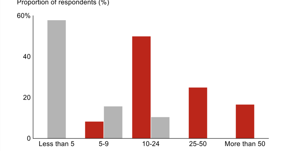 But the difference between leaders and laggards that I found most noteworthy was the chart above — the huge spread in the number of prioritized martech use cases that are widely adopted globally between leaders and laggards.