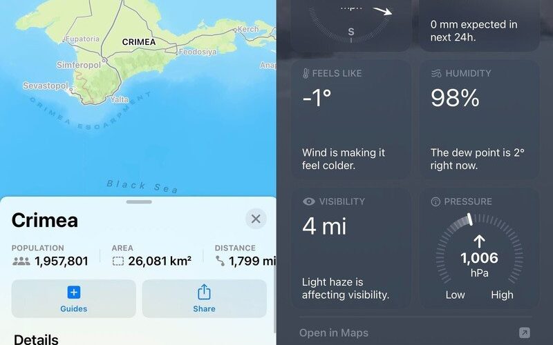 Apple’s Maps and Weather apps now mark Crimea as part of Ukraine when accessed outside of Russia. It appears the company has quietly updated its stance on the territorial dispute. Russia’s recent invasion of Ukraine may have something to do with it.