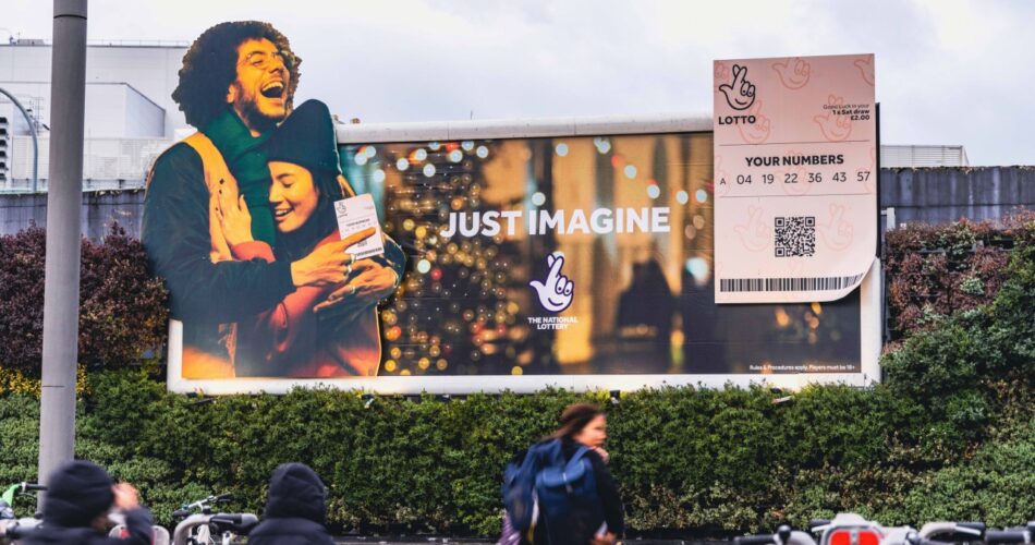 Billboard in Shepherd’s Bush comes complete with twinkling lights and an enormous lottery ticket.