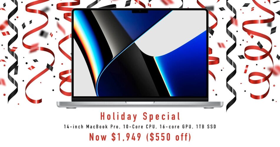 Apple’s 14-inch MacBook Pro equipped with an upgraded M1 Pro chip (10-core CPU & 16-core GPU) is discounted to $1,949 — a record low and less than the retail cost of the base 512GB model. Plus, save $70 on AppleCare.