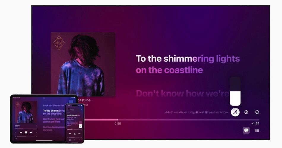 More than presenting the main song lyrics on screen as it can now, Apple Music Sing will optionally show “multiple lyric views.” It will enable users to “take the lead, perform duets, sing backup, and more.”