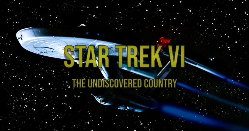 The title "Star Trek VI: The Undiscovered Country" over a model of the starship Enterprise flying across a star field.