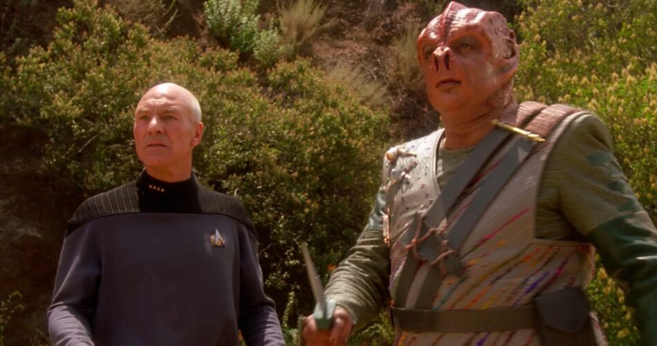 Photo of Picard and Dathon at El-Adrel in Star Trek: The Next Generation