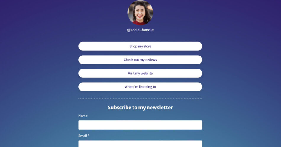 A link-in-bio is just a landing page that has been built to look good and be useful for a social media user. So the AWeber link-in-bio is one of our landing page templates.