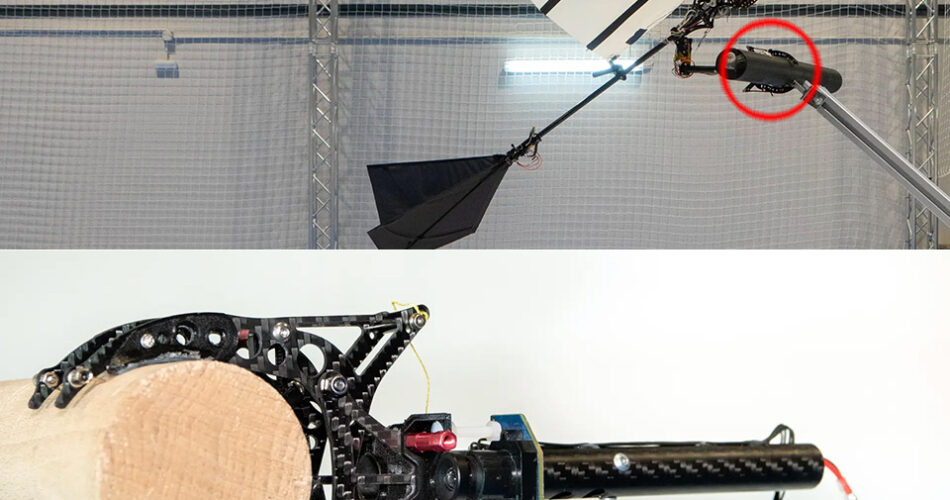 It’s no PHRACTYL Macrobat, but the autonomous P-Flap robot bird by researchers in Swiss Federal Institute of Technology in Lausanne does have a talon-like claw mechanism that enables it to land safely on a perch. This Perching Flapping-Wing Robot (P-Flap) boasts a 59-inch (1.5-meter) wingspan and its carbon fiber claw requires no external power source to stay open or closed, as it’s directly connected to the robot’s under-body.