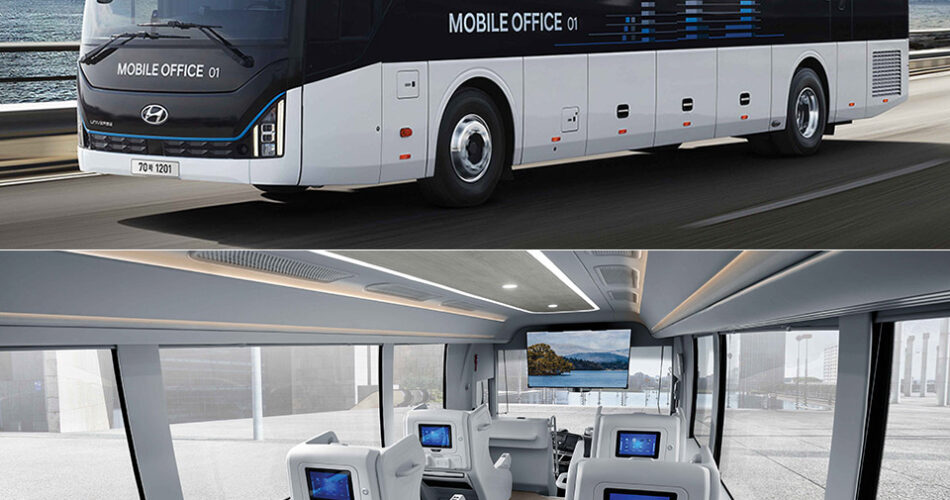 The personal workspaces in the middle are equipped with premium reclining seats, tables, wireless charging pads, individual entertainment systems and personal storage spaces to create a comfortable environment for work and relaxation in transit. Universe Mobile Office is available in three options, including standard 10-seater, 13-seater (12+1) with group collaboration space in the front, 13-seater (12+1) with expanded office space, and 13-seater (11+1+1) with separate seat configurations for transit and collaboration,” said Hyundai.